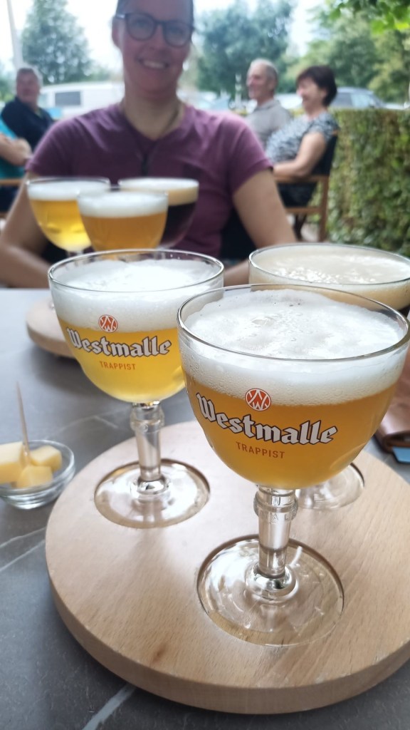 We vervolgden onze weg naar de abdij en café van Westmalle, waar we een proeverijtje deden.