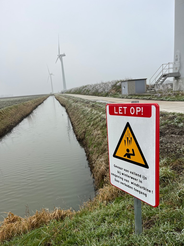 Vandaag was het vooral rechttoe-rechtaan langs die dijk. Daarna opwarmen bij Wad Noflik in Oude Bildtzijl. Toen we weer probeerden op de route te komen, moesten we oppassen voor ijspegels…
