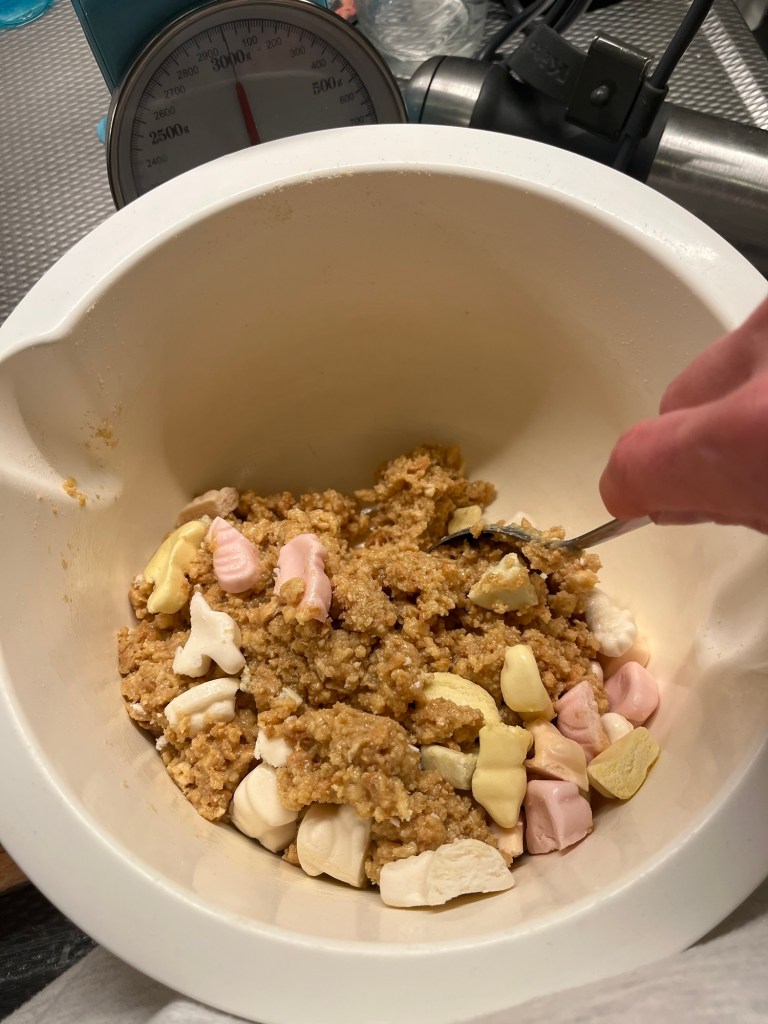 - Voeg de koekjes toe aan bovenstaand mengsel