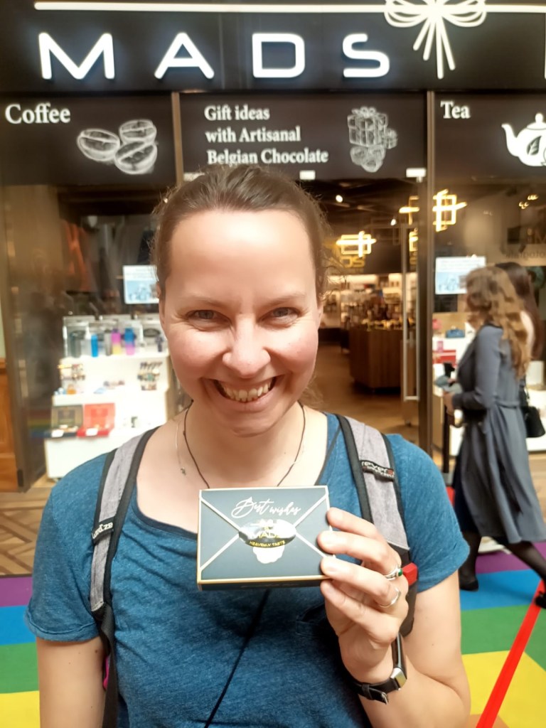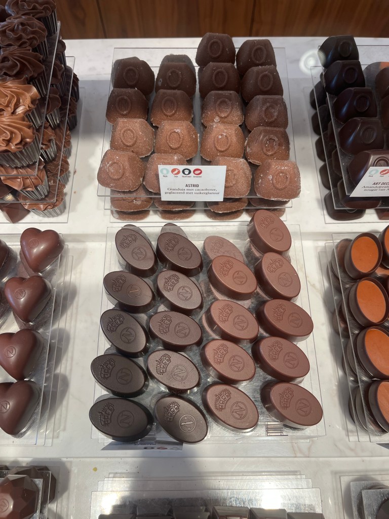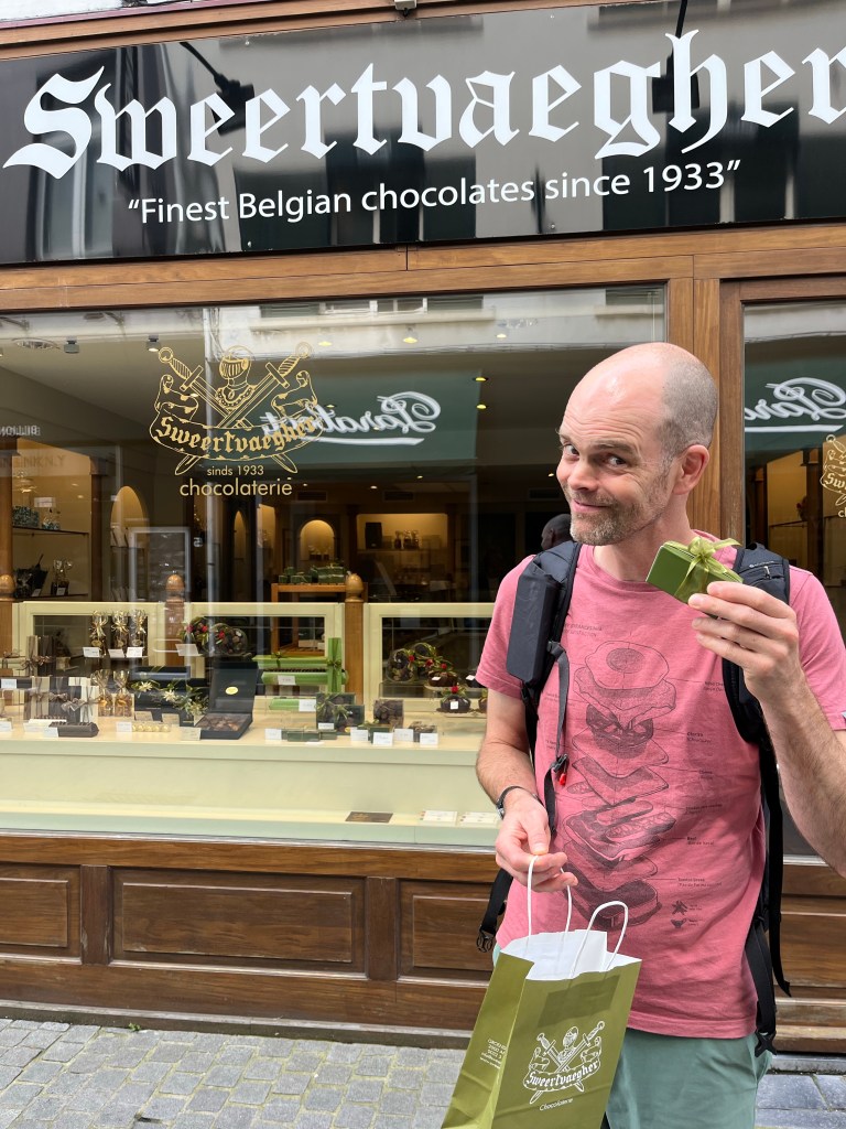 Op mijn 1000 duizenddagenproject staat het doel: chocoladewandeling in Antwerpen. Deze wilde ik eigenlijk met een organisatie doen, maar we bleken het ook prima zonder te kunnen. We stoppen bij drie chocolatiers, we mochten een bonbonnetje proeven en we kochten voor een klein kapitaal aan overheerlijke bonbons.