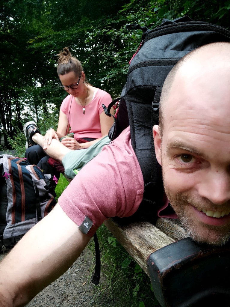 Na een nacht van vreselijkheid: een eenpersoonsdekbed in een tweepersoonshoes voor ons beiden. Een klein bed. Warm. Lichtdoorlatende gordijnen, muggen en een snelweg, gaan we op pad. Wij laten ons niet kennen. Ontbijt bij de Walvis. Mogelijke dependance van degene uit Amsterdam 🙂 mmm.