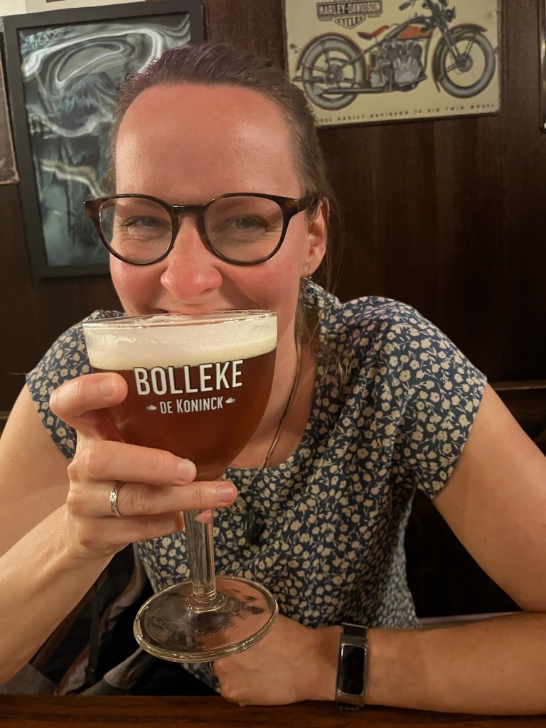 Gisteravond zijn Paul en ik aangekomen in Antwerpen Berchem. We liepen ‘s avonds naar onze Airbnb, helemaal buiten het centrum, omdat alles vol of heel duur was in het centrum, waarschijnlijk vanwege de pride. Onderweg kwamen we een kroegje tegen in de categorie oubollig. Het eerste onderdeel van het kwartet was binnen. In dit geval een Bolleke. Twee Bollekes, €5,20. Paul dacht dat de barman misschien dacht dat ik zelf zou afrekenen. Twee De Koninck deze prijs! WoW