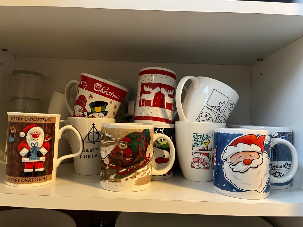 Soms in oktober, soms in november komen de kerstmokken in de kast. De mokken waar we het hele jaar uit drinken worden omgewisseld door de kerstvariant ervan. We hebben in kringlopen de afgelopen jaren de leukste of lelijkste varianten meegenomen en elk jaar vind ik het weer heel gezellig om ze om te wisselen.