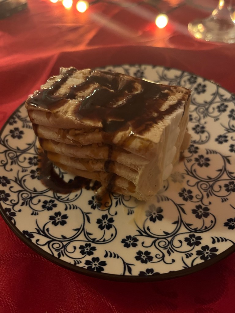 Het toetje heb ik vol boosheid zitten maken, eerst was het gat te groot van het glazuurzakje, toen wilden we een cornetje vouwen, maar dat lukte mijn moeder niet goed, ondertussen had ik het andere hoekje er al afgeknipt en ging het prima, totdat ik er achterkwam dat ik ondertussen het glazuur aan de andere kant in mijn handpalm aan het drukken was (even warm als mijn hand, dus dat voelde ik niet echt, haha) Ik had vooral die tegenzin, omdat ik dacht dat een ontbijtkoektoetje niet echt lekker zou zijn ook. Maar niets was minder waar! Het toetje zag er fantastisch uit, en het was heel lekker! Ook maken: Allerhande